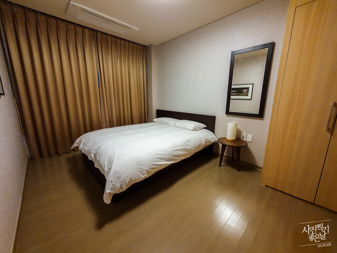ํฐ ๋ฐฉ์ ์ฌ์ง์ ๋๋ค. ๋๋ธ์นจ๋๊ฐ ์๊ณ ํ์ฅ์ค์ด ๋ธ๋ ค ์์ต๋๋ค.