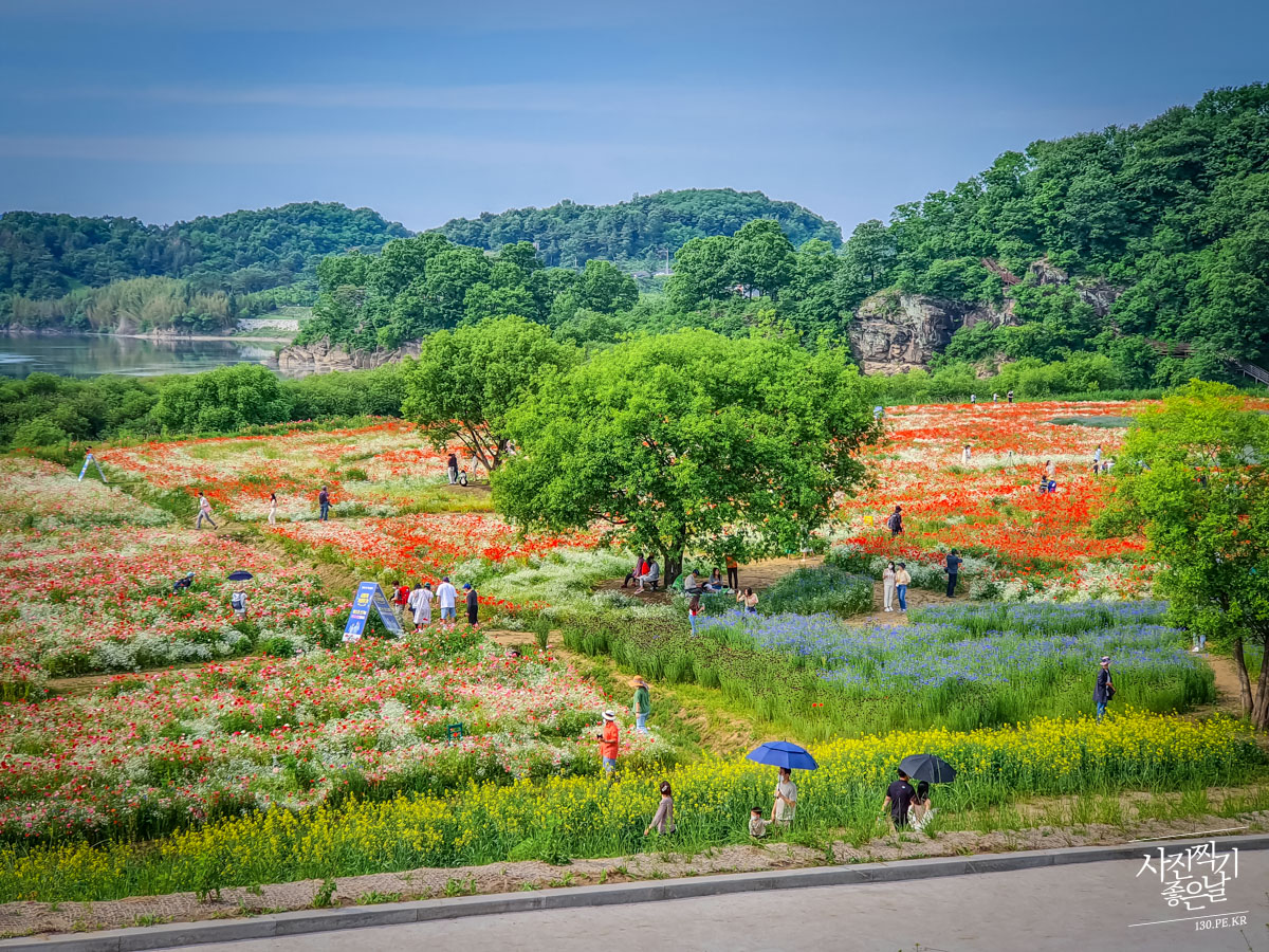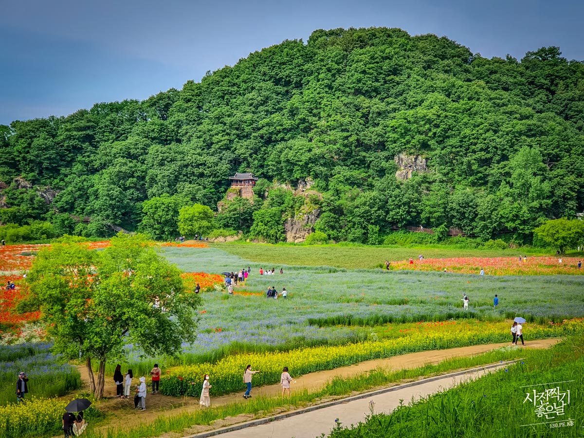 ๊ฝ๋ฐญ์์ ๋์ ๋๋ฐฉ๊ธธ ์๋ก ์ฌ๋ผ์๋ดค์ต๋๋ค. ๊ฝ ์์์ ๊ฐ๊น์ด ๋ณด๋ ๊ฒ๋ ์ข์ง๋ง ๋ฉ๋ฆฌ์ ๊ฝ๋ฐญ ์ ์ฒด๋ฅผ ๋ณด๋๊ฒ๋ ๋ฉ์ง๋ค์.