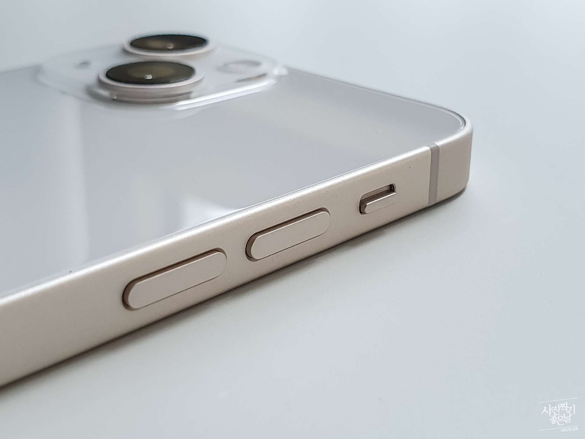 ์ค๋ฅธ์ชฝ์ ์ ์๋ฒํผ, ์ผ์ชฝ์ ๋ฌด์ ์ค์์น์ ๋ณผ๋ฅจ ๋ฒํผ์ด ์์ต๋๋ค.