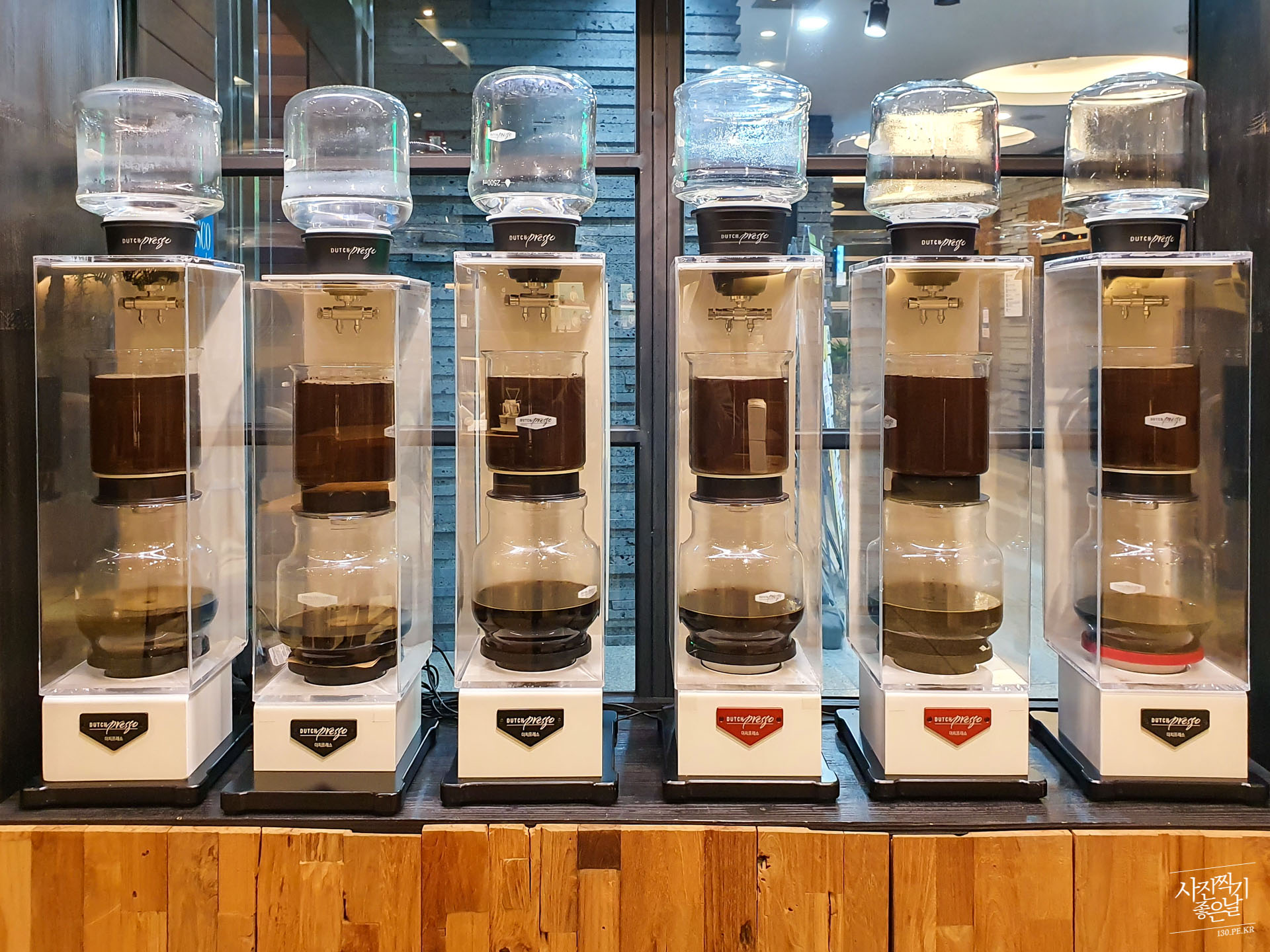 ํ์ชฝ์๋ ๋์น์ปคํผ ๊ธฐ๊ตฌ๋ค์ด ๋ฌผ๋ฐฉ์ธ์ ๋จ์ด๋จ๋ ค ์ปคํผ๋ฅผ ๋ง๋ค๊ณ ์์ต๋๋ค. ํ ๋ฐฉ์ธ ํ ๋ฐฉ์ธ์ด ์ ๋ง ์ฒ์ฒํ ๋จ์ด์ง๋๋ฐ ๋์น์ปคํผ๋ ์๊ฐ์ด ๋ง๋๋ ์ปคํผ๋ค์.