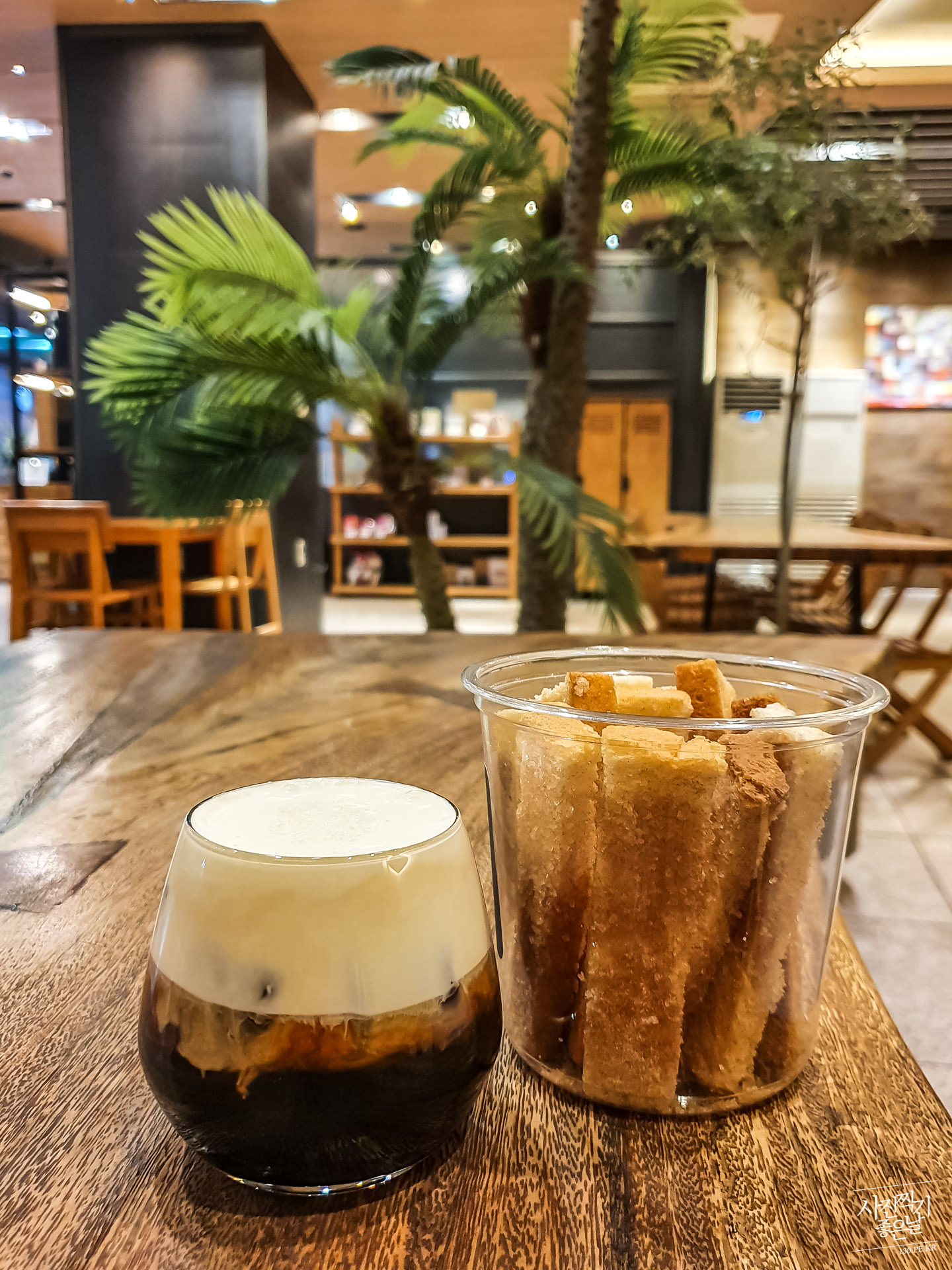 ์ง์์ด ์์ง ๋ง๊ณ ํฌ๋ฆผ๊ณผ ์ปคํผ๋ฅผ ๊ฐ์ด ๋ง์๋ผ๊ณ ์๋ ค์คฌ๋ค๊ธฐ์ ๋ฐ์ ์ปคํผ๊น์ง ํ๋ก๋ก ๋ง์ ๋ด ๋๋ค.